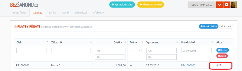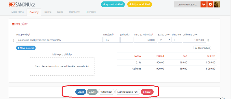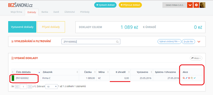 A přes tlačítko tužka se nám otevře doklad, který můžeme stáhnout nebo vytisknout.