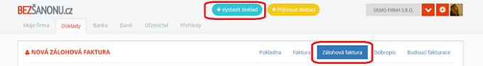 Zálohové faktury pro naše zákazníky připravíme prostřednictvím volby Vystavit doklad a dále zvolíme zálohová faktura.