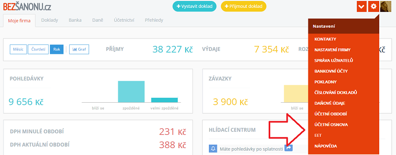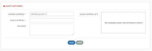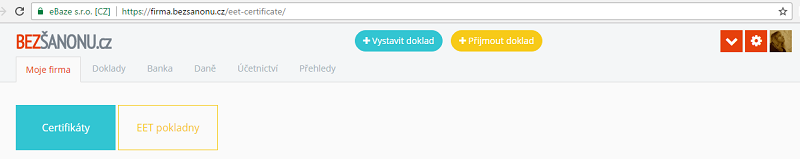 Na daňovém portálu jsme získali certifikát a nyní již můžeme certifikát nahrát do BezŠanonu. EET je dostupné v tarifu Komplet.